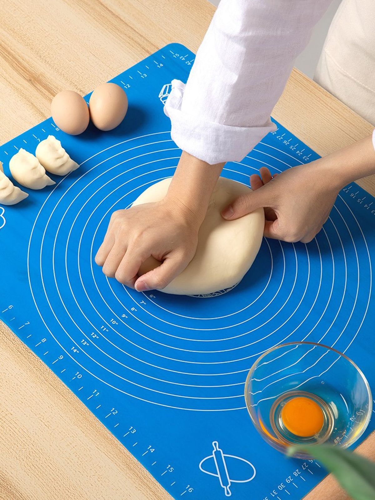 • Non-stick silicone surface – no sticky dough mess